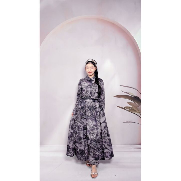 【ready stock】Gaun Wanita | Motif Bergaris Rok Panjang | Original By FADFAD | Berkerah Lengan Panjang | Gaya Kasual