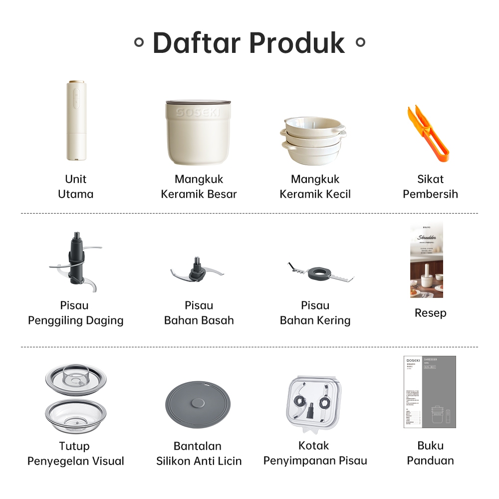 Blender Mini Chopper SOSEKI 300W – Bumbu, Daging, Sayur + Bonus Mangkuk