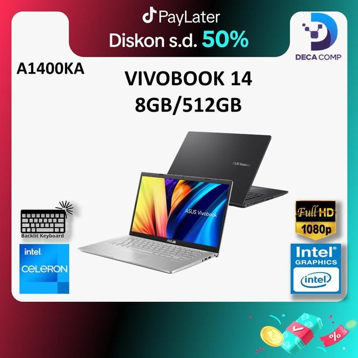 ASUS VIVOBOOK 14 A1400KA N4500 RAM 8GB 512GB SSD W11 14.0FHD BACKLIT WINDOWS 11 - NON BUNDLING, A1400KA 8/512