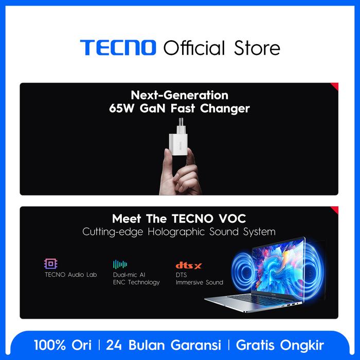 [BEST OFFER] TECNO MEGABOOK T1 R5 - 16GB+512GB, AMD RYZEN 5-7430U, 100 PERSENSRGB DISPLAY, 75WH BATTERY, 65W FAST CHARGER, DTS IMMERSIVE SOUND, WINDOWS 11, 14INCH, GARANSI 24 BULAN