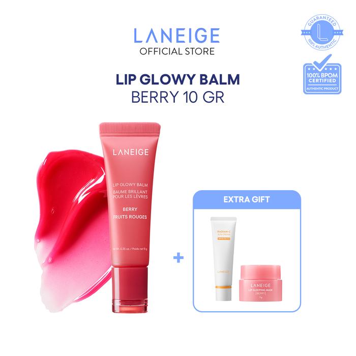 NEW LANEIGE LIP GLOWY BALM BERRY 10GR - LIP BALM MENYEGARKAN, MENUTRISI, MELEMBAPKAN, PELEMBAP BIBIR, GLOSSY - BERRY