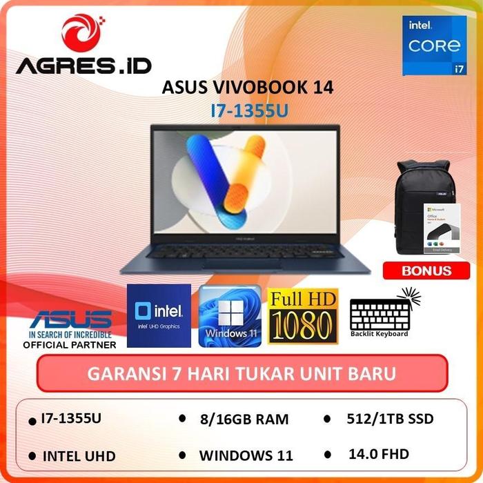 ASUS VIVOBOOK 14 A1404VA I7 1335U 8/16GB 512/1TB W11+OHS 14" FHD - NON BUNDLE, 8/512GB