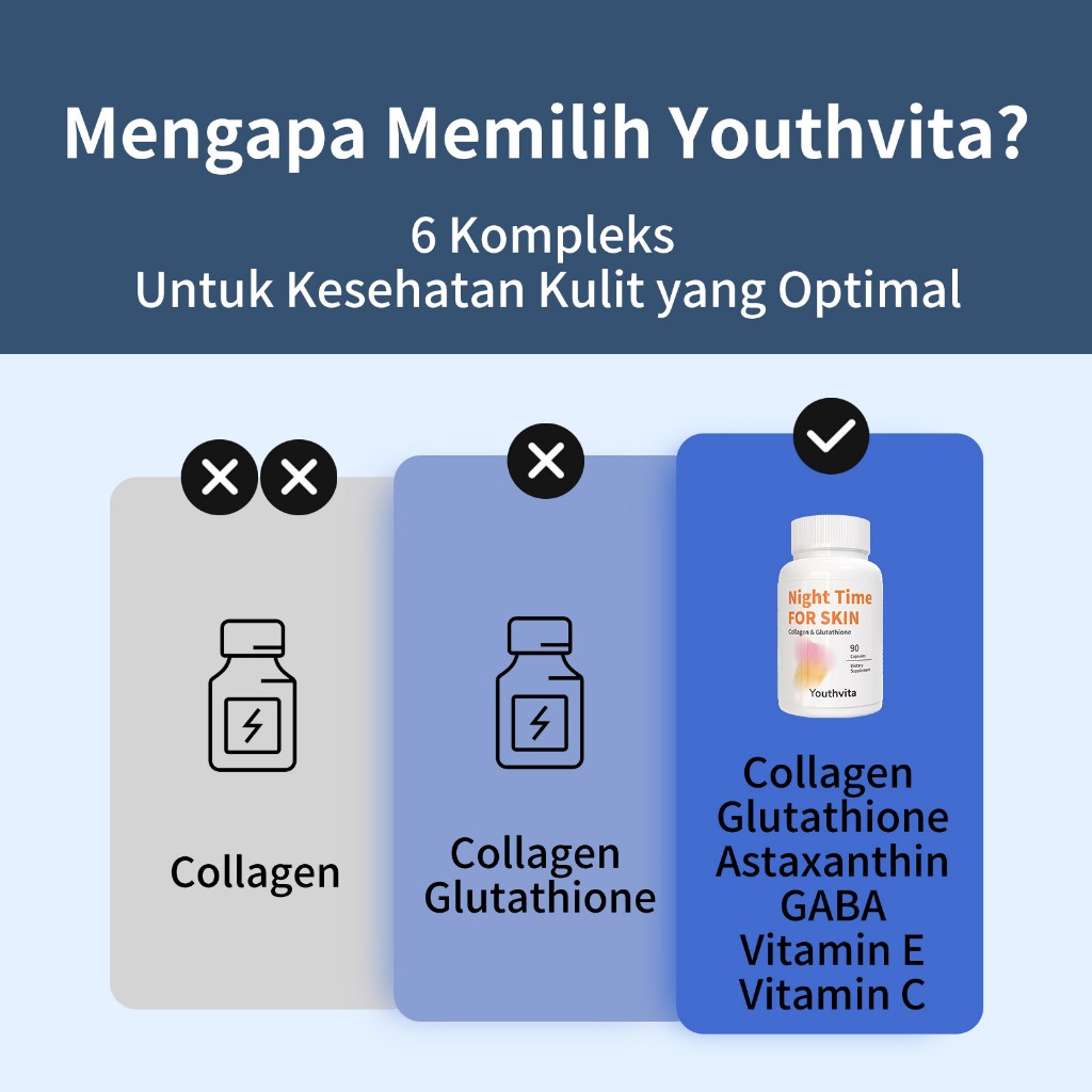 Youthvita Collagen Peptides L-Glutathione whitening Vitamin C GABA Astaxanthin 12 mg Vitamin E 400IU kolagen suplemen, S