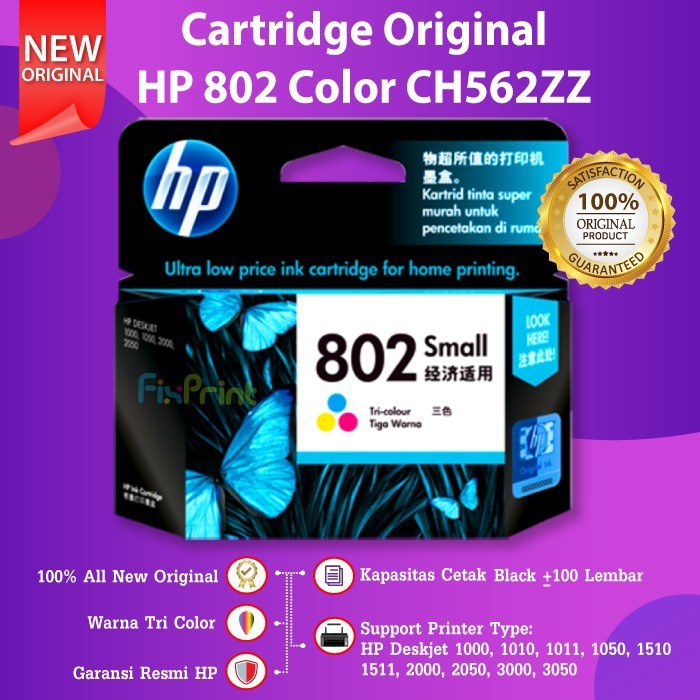 FixPrint SET HP 802 Black Color Tinta Printer Deskjet 2050 3050 1010