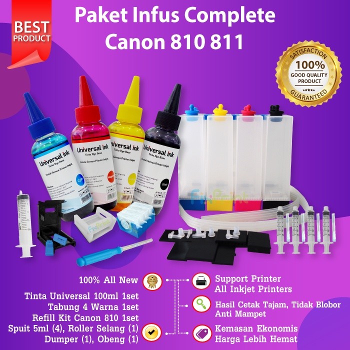 FixPrint Paket Tinta Infus Printer iP2770 MG2570s TS307 810 811 745s 746s