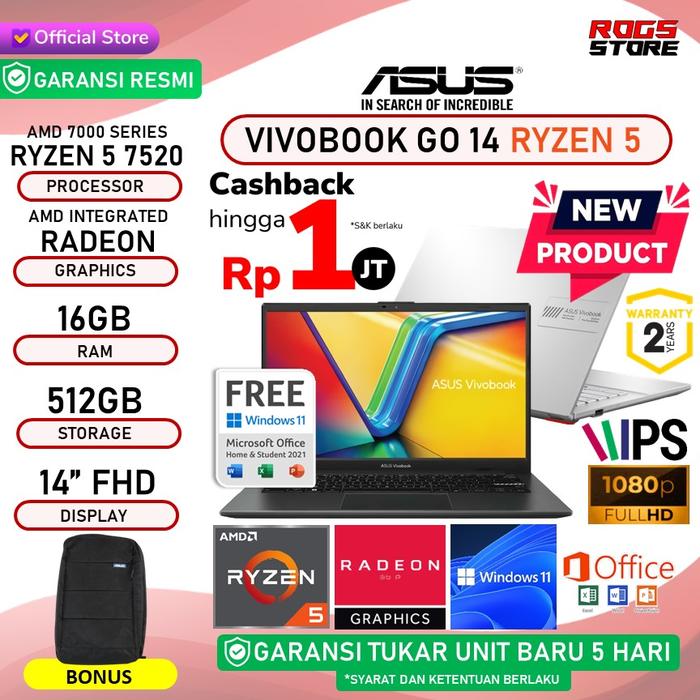 ASUS VIVOBOOK GO 14 AMD E1404FA RYZEN 5 7520U 16GB 512GB SSD W11+OHS 14.0FHD IPS - STANDARD, E1404FA IPS 8GB