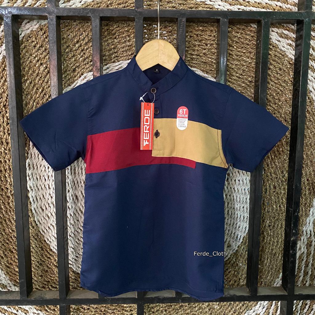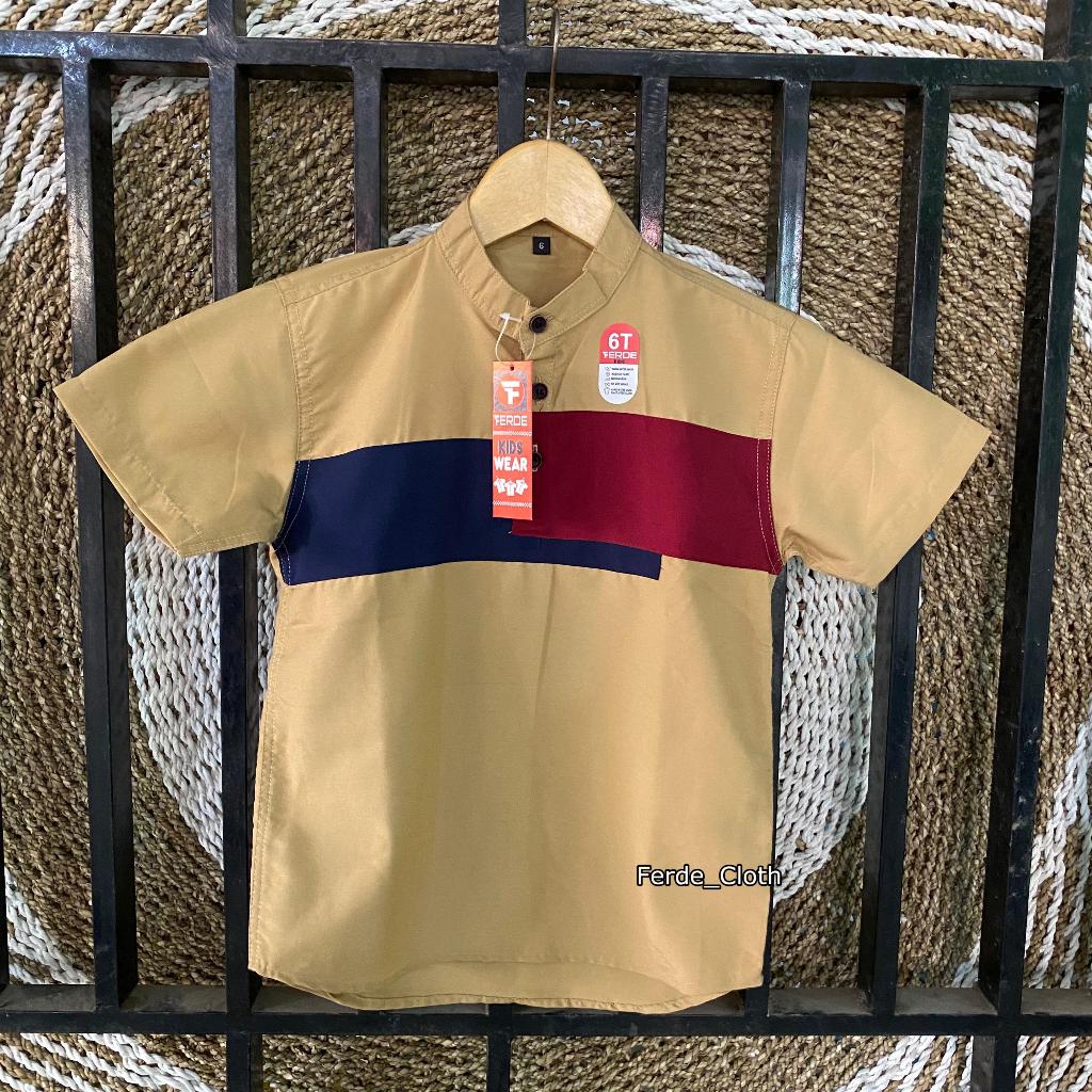 Kemeja Anak Motif Kombinasi Keren Lengan Pendek Casual Usia 2-13 Tahun