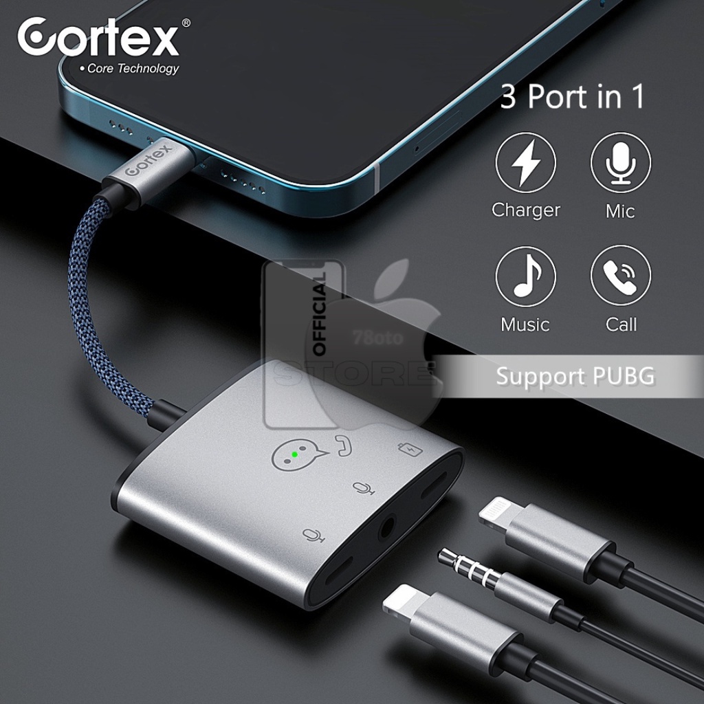 Cortex - Splitter - 2In1 3In1 - Lightning To Jack Converter - Pubg Charger + Open Mic -