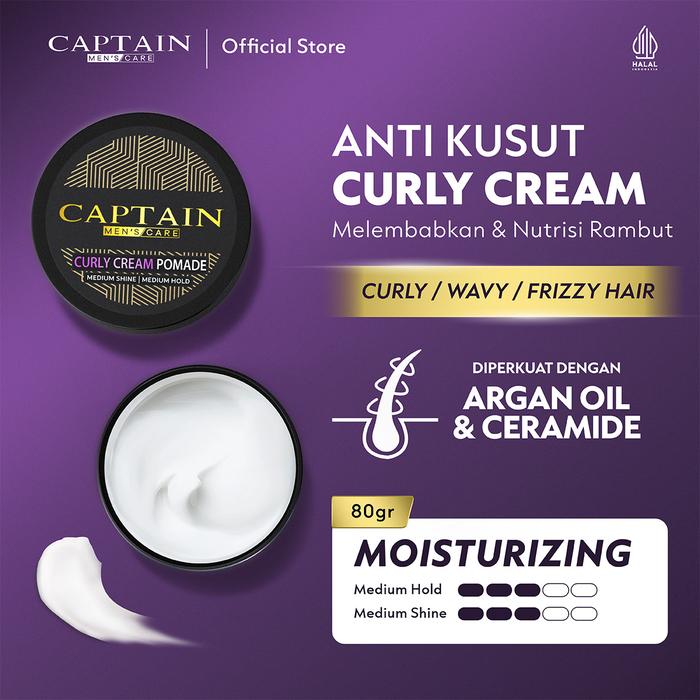 Captain Men'S Care Curly Cream Pomade 80Gr / Pomade Pria / Medium Hold / Medium Shine / Moisturizing / Melembabkan Rambu