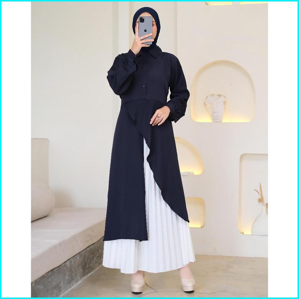 Miqdad Fashion - Athalia Long Tunik - Kemeja Wanita Lengan Panjang - Baju Atasan Wanita Muslim Kekinian Terbaru