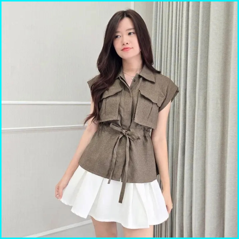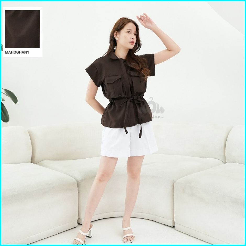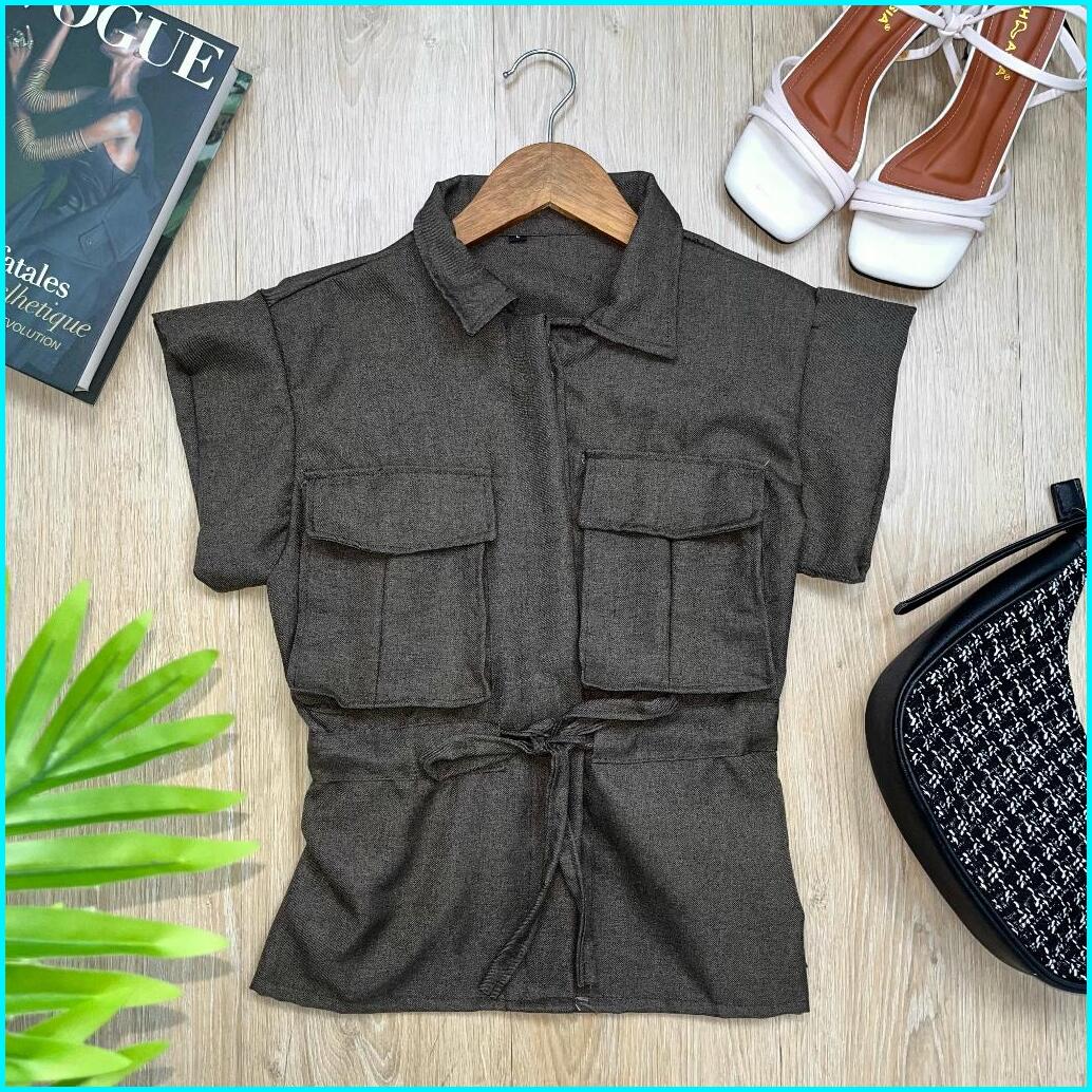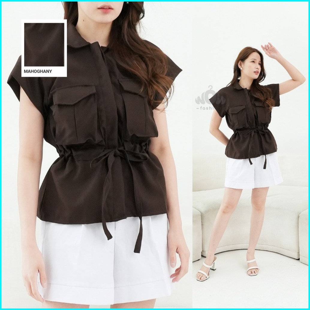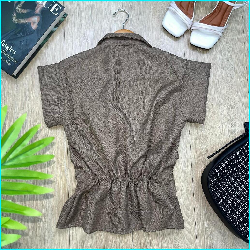Wow-yuan Top Outer Tangan Pendek Kemeja Outer Top Semiwoll Atasan Wanita Terbaru