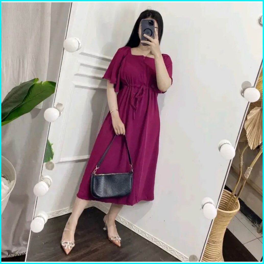 Zahra Dress Midi Dres Wanita Muslimah Airflow Crinckle Crincle Btcsolo Termurah