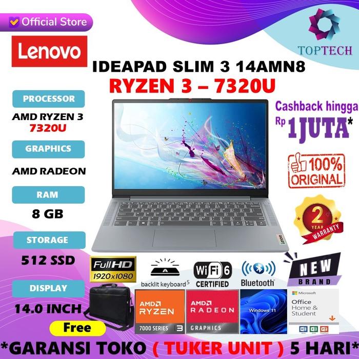 LENOVO IDEAPAD SLIM 3 14AMN8 RYZEN 3 7320U 8GB 512GB SSD 14" FHD OHS W11 - NON BUNDLING, GREY
