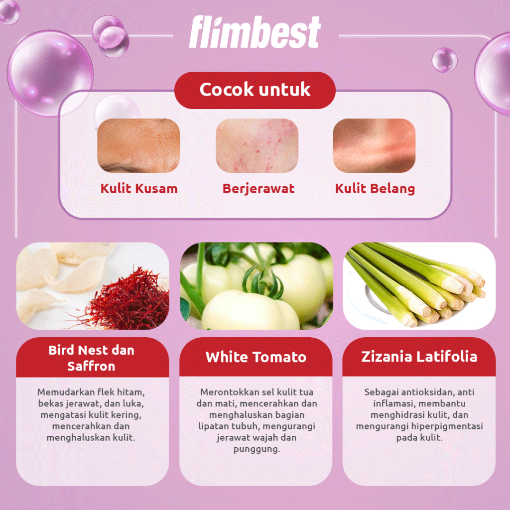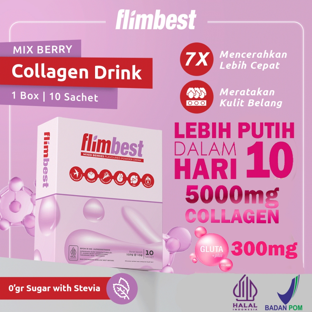Flimbest VIP Collagen 1 Box 10 Shet 5000mg L-Glutathione 300mg & 100% Vitamin C Bebas Gula White Tomato Saffron Bird Nes