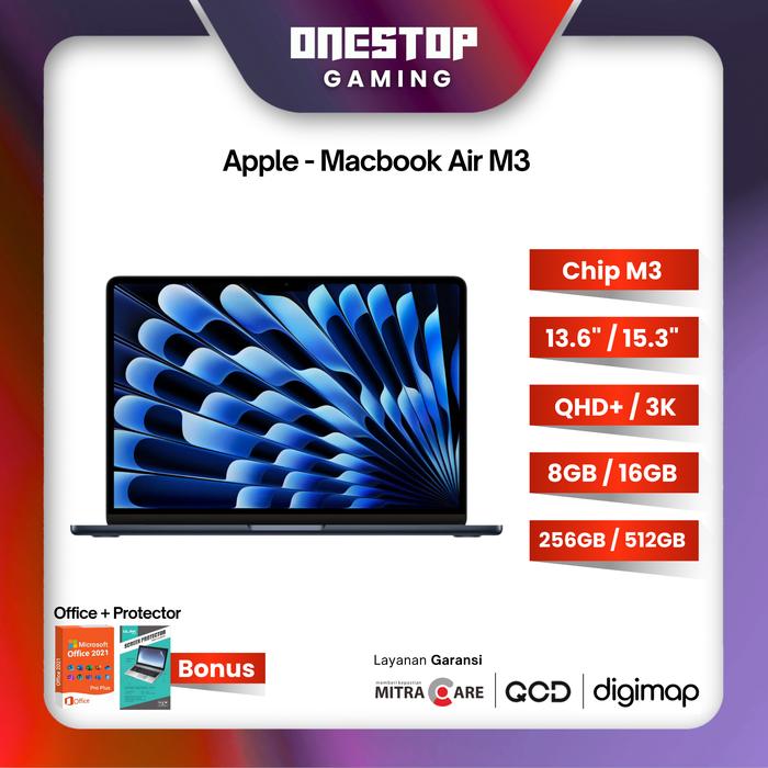 APPLE MACBOOK AIR M3 2024 13 / 15 INCH SSD 512GB 256GB RAM 16GB 8GB - APPLE, APPLE MIDNIGHT 13" 10C 16/512GB