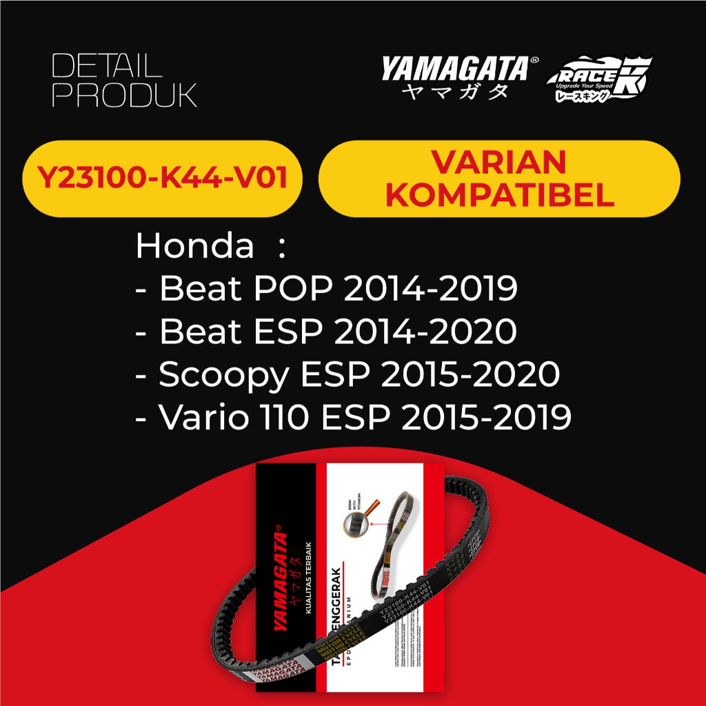Yamagata Vanbelt V Belt Honda Beat Vario Scoopy eSP POP Street 110 Starter Halus K44 EPDM Titanium Racing