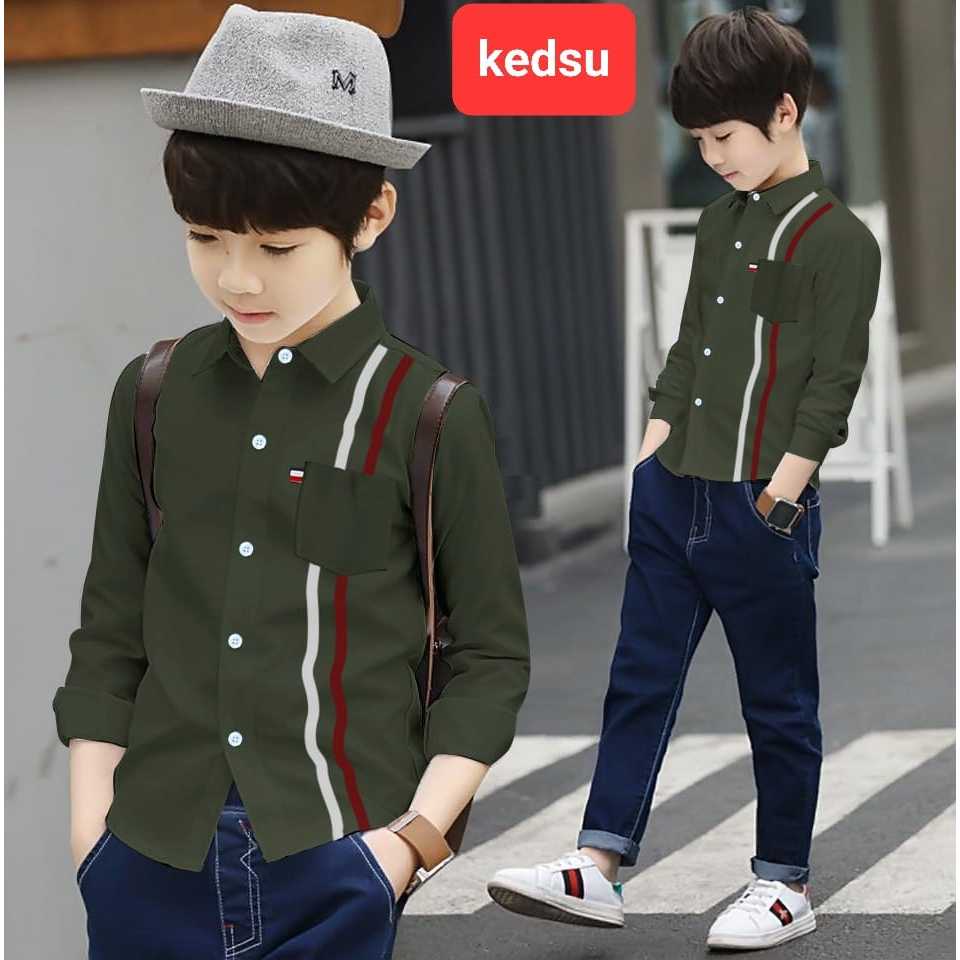 hem kids kemeja anak laki usia 3-12 tahun strecth/