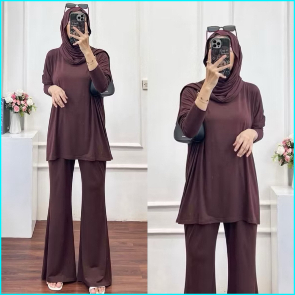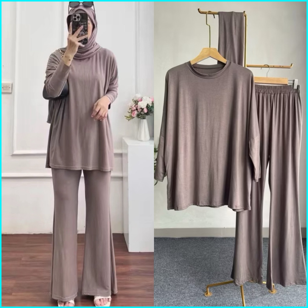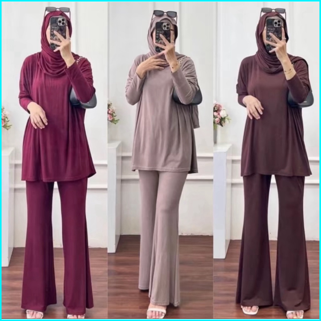 Everly Set Cutbray Free Hijab Pashmina Setelan Celana Dan Hijab Muslim Basic Daily Set Celana Panjang Cut Bray Atasan