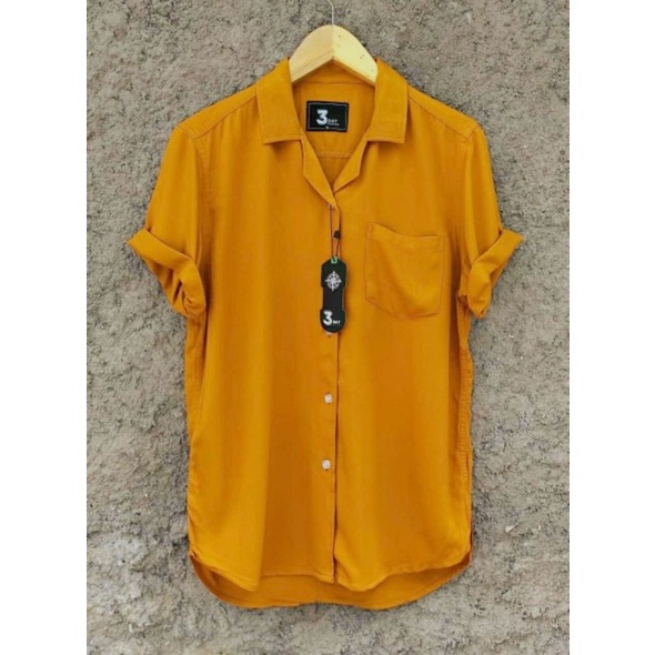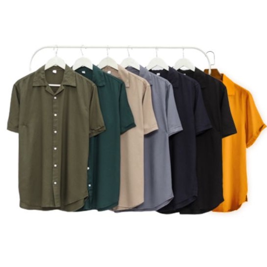 Basic Colour Shirt | Kemeja Pria Polos Retro V Neck Lengan Pendek Kasual Pria Wanita