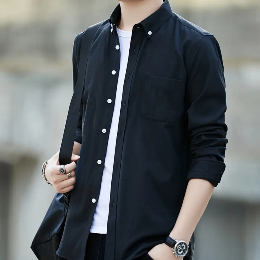 Baju Kemeja Pria Lengan Panjang Polos Abu-Abu Navy Hitam Maroon Putih Hem Cowok Keren Kantor dan Kasual Bahan Katun Prem