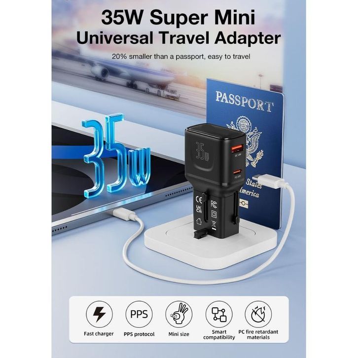 TERBARU Mediatech Mini Universal Travel Adaptor MT-810 GaN Technology / Pocket Travel Charger egikd