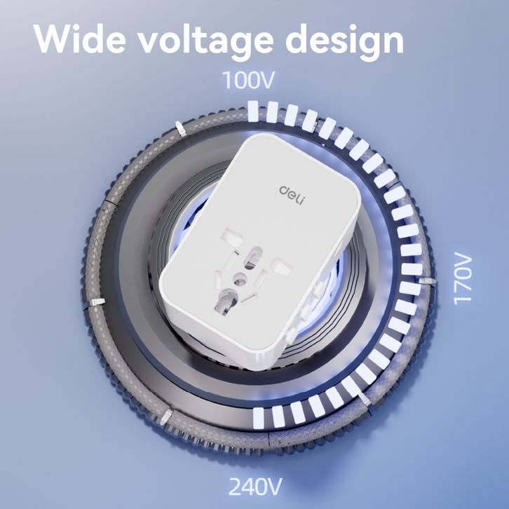 EKSKLUSIF Deli Universal Travel Adaptor + Charger 45W / Colokan Internasional 3 USB-C EU/US/UK/AU ET767 esech