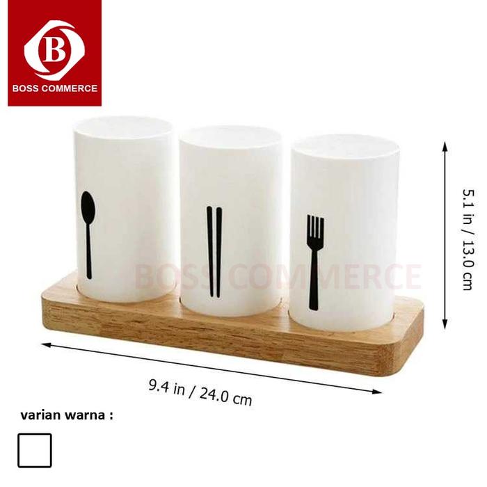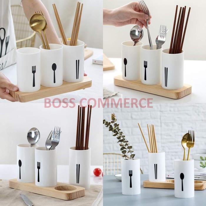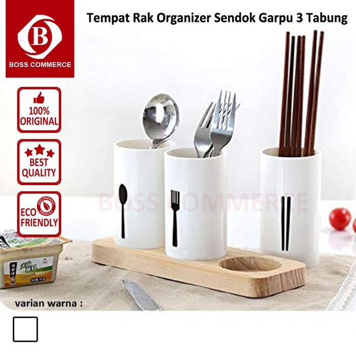 Tempat Sendok Garpu Sumpit Rak Organizer Dapur Estetik Bentuk Tabung 3 Pcs Penyimpanan Plastik - Putih