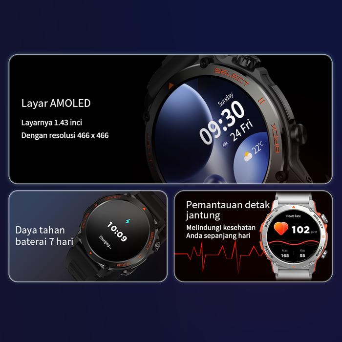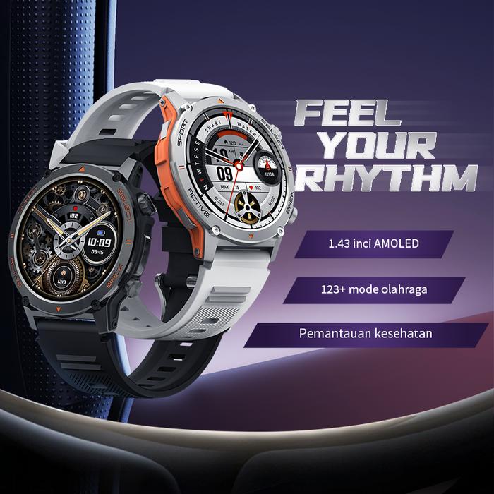 【Gaya Olahraga】Morein Jam Tangan Pintar Amoled Baru Gt1(Z136/Zw13) | Ip68 Tahan Air | Layar Resolusi Tinggi 1.43 Inci |
