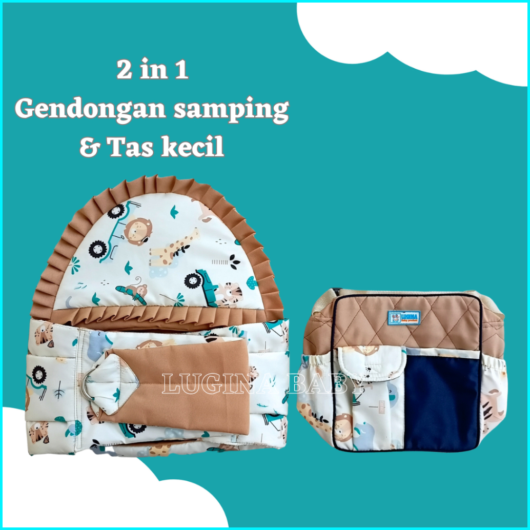 Set Perlengkapan Bayi Gendongan Samping Bayi Dan Tas Bayi Kecil Motif Safari