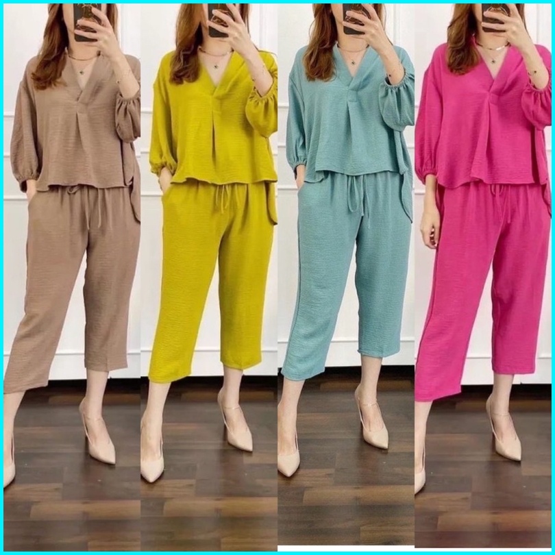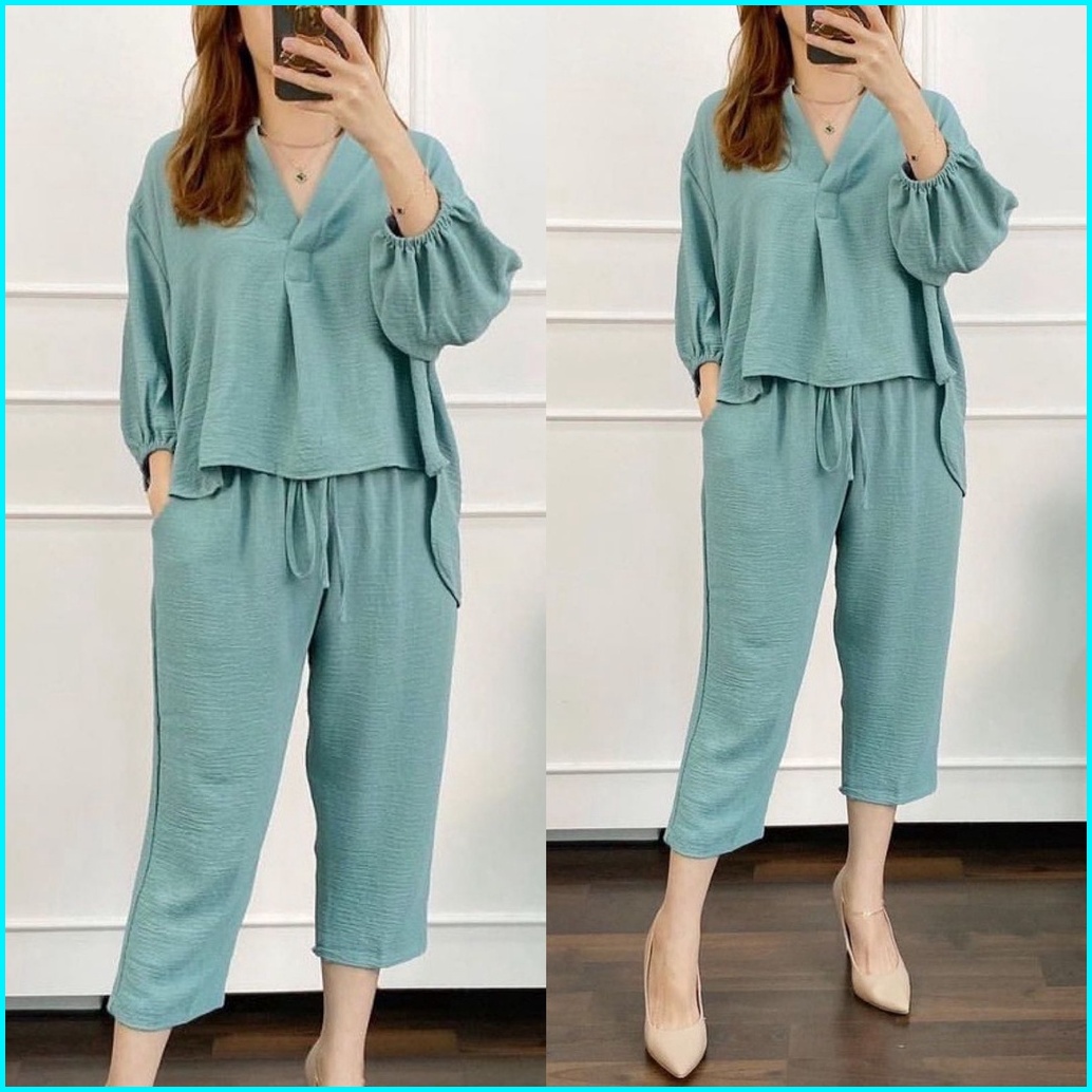 Cindy Setelan Oneset Wanita Muslimah Airflow Crinckle Deodora Premium Rayon