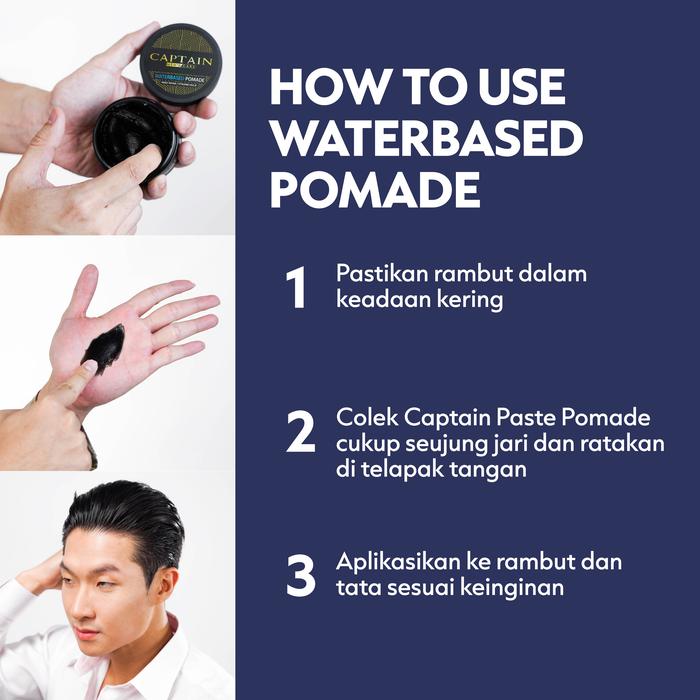 Captain Men'S Care Waterbased Pomade 80Gr / Pomade Pria / Strong Hold / High Shine / Sleek & Shiny / Membuat Rambut Tamp