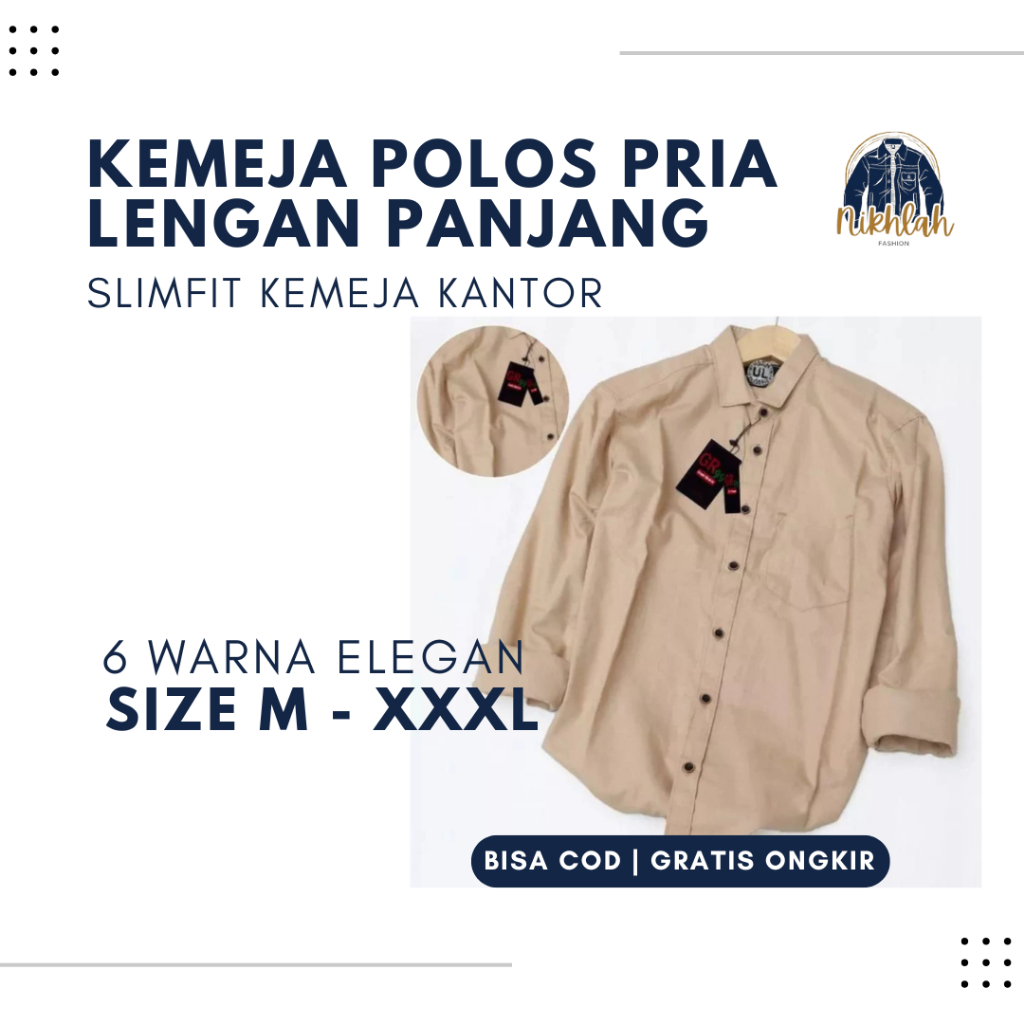 Kemeja Polos Pria Lengan Panjang Slimfit Kemeja Kantor