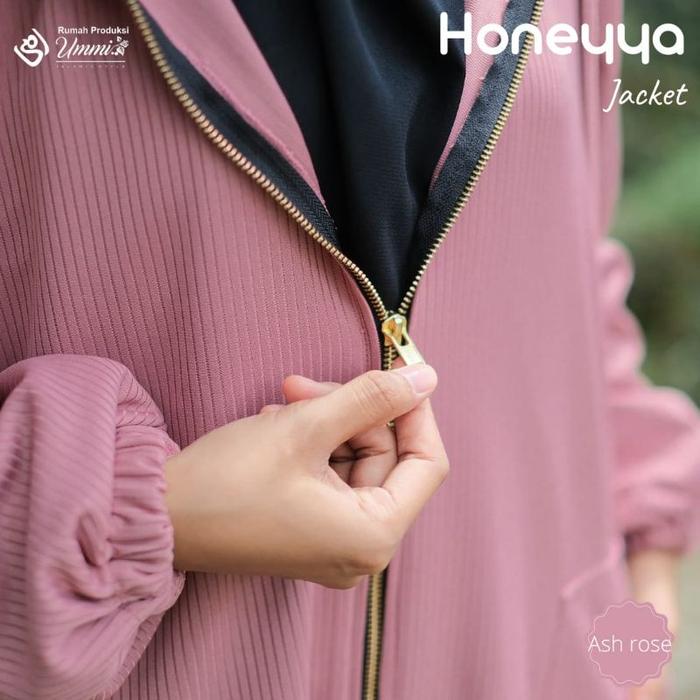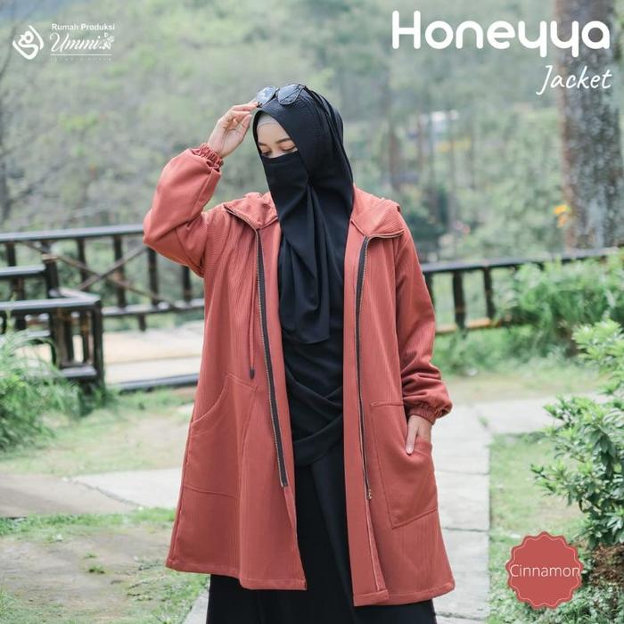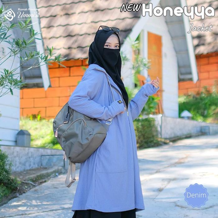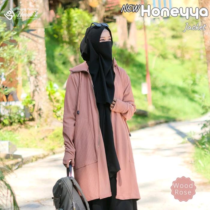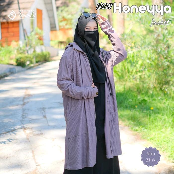 Honeyya Jaket Syari Premium Knit Abu Zink - Jaket Panjang Wanita Dengan Hodei Belakang & Kantong Samping - Nyaman Musim