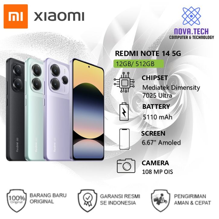 Xiaomi Redmi Note 14 5G NFC | 12GB/ 512GB | 5110mAh | Mediatek Dimensity 7025-Ultra | Layar 6.67" AMOLED display | Baru
