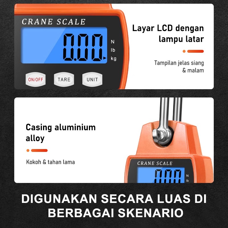 Timbangan Digital Gantung 300kg - Timbangan Crane LED Oranye, Akurat & Tahan Beban, untuk Industri & Gudang