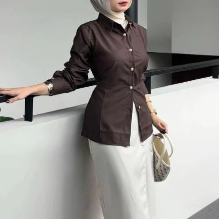 *Julia Top kemeja* - Kemeja Slim Fit - Atasan Wanita - Fabric Cotton with two pleated on the waist (Slim Effect) - Offic