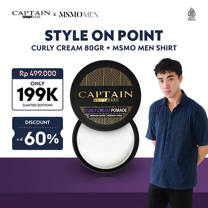 【Exclusive Bundle】 Captain Curly Cream Pomade 80Gr + Msmo Men Kody T-Shirt - L, Beige
