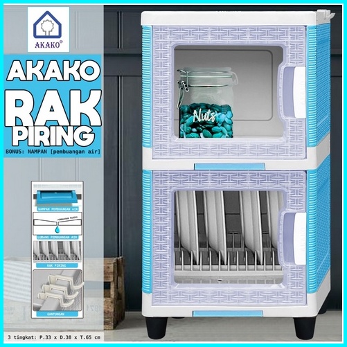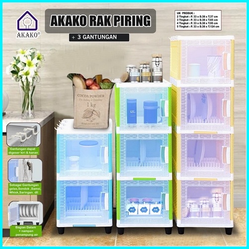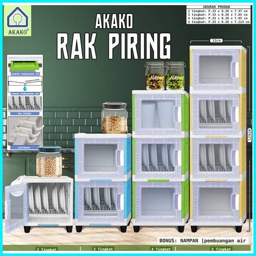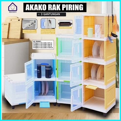 Akako Rak Piring 1 2 3 Dan 4 Susun Plastik Pintu Transparan Mini Dish Rack Lemari Dapur