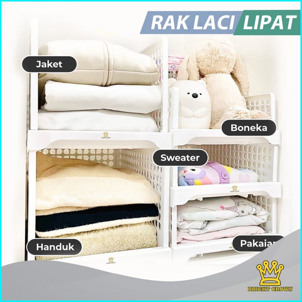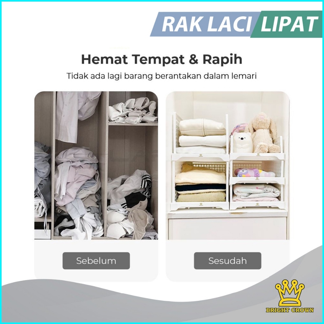 Bright Crown Laci Lipat Rak Baju Storage Susun Rak Geser Serbaguna Tempat Baju Selimut Kaos Kaki