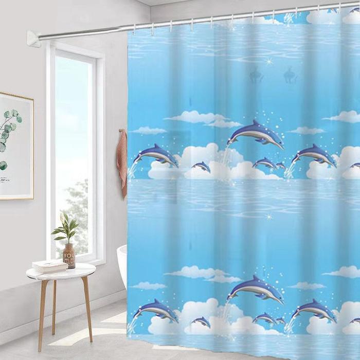 Tirai Kamar Mandi Shower Curtain/Tirai Shower Anti Air Motif/Shower Curtain Waterproof - Green Leaf