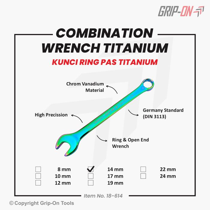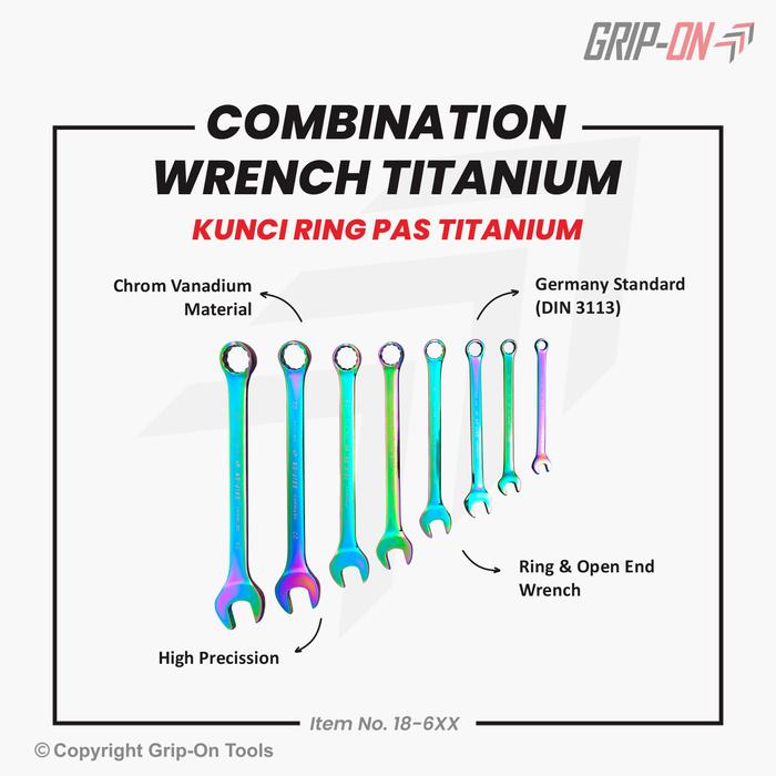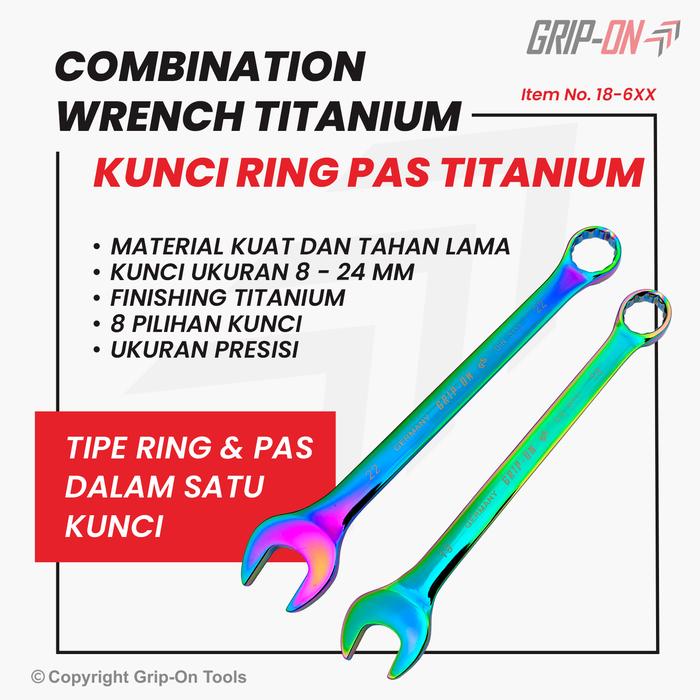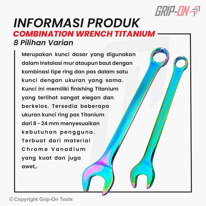 Grip-On Combination Wrench Titanium Kunci Ring Pas 2 In 1 Multifungsi - 8 Mm