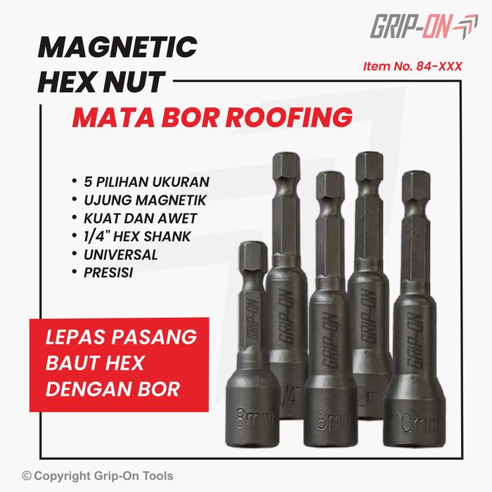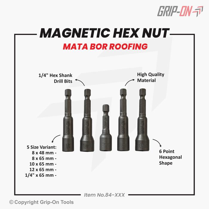 Grip-On Magnetic Hex Nut (1 Pc) / Kunci Baut Roofing / Matabor Roofing - 8 X 48 Mm