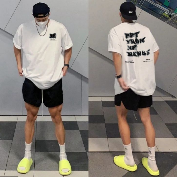 Mode Korea T-shirt Atasan Baju Kaos Oversize Pria Putih Lengan Pendek Dewasa