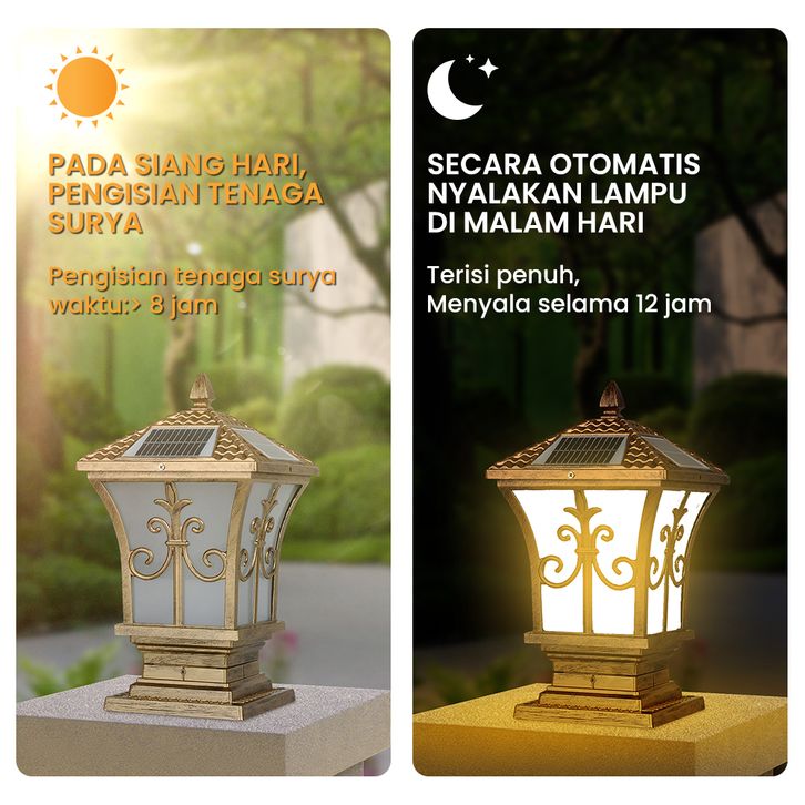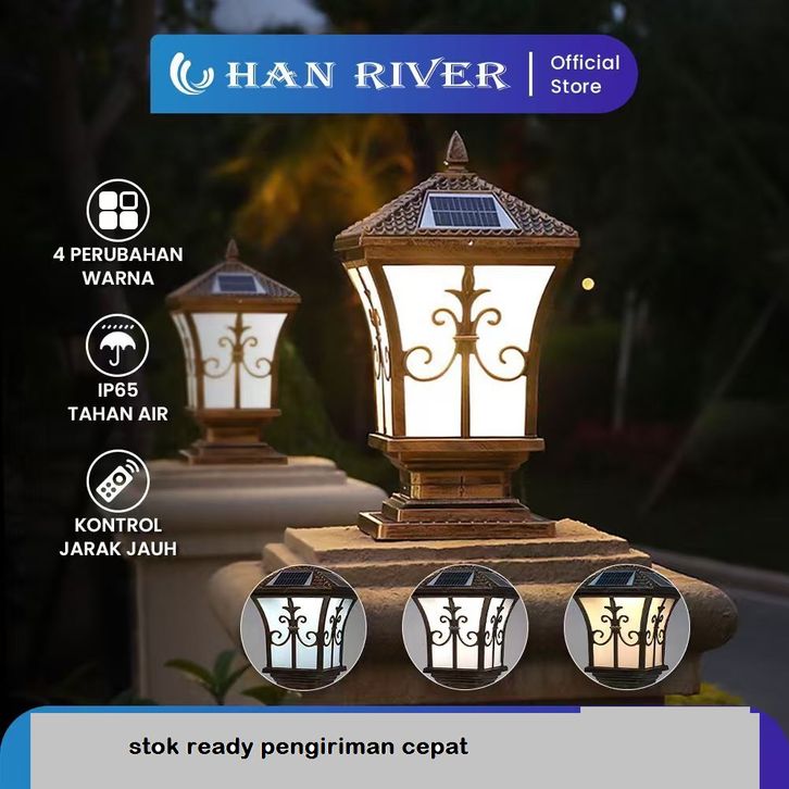 Lampu taman tenaga matahari 3 warna outdoor lampu pilar multifungsi lampu pagar tenaga surya hanriver
