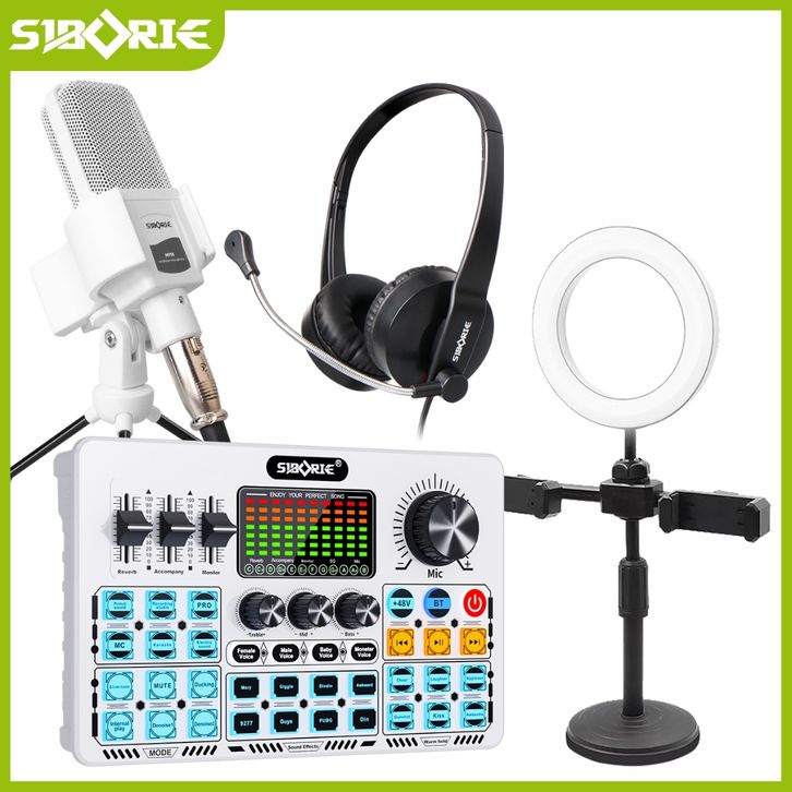 Siborie Soundcard Q6S+SF666/MS36/M998 Mic+H2 Headphone+Ring Light Paket Lengkap Set Mixer Bluetooth