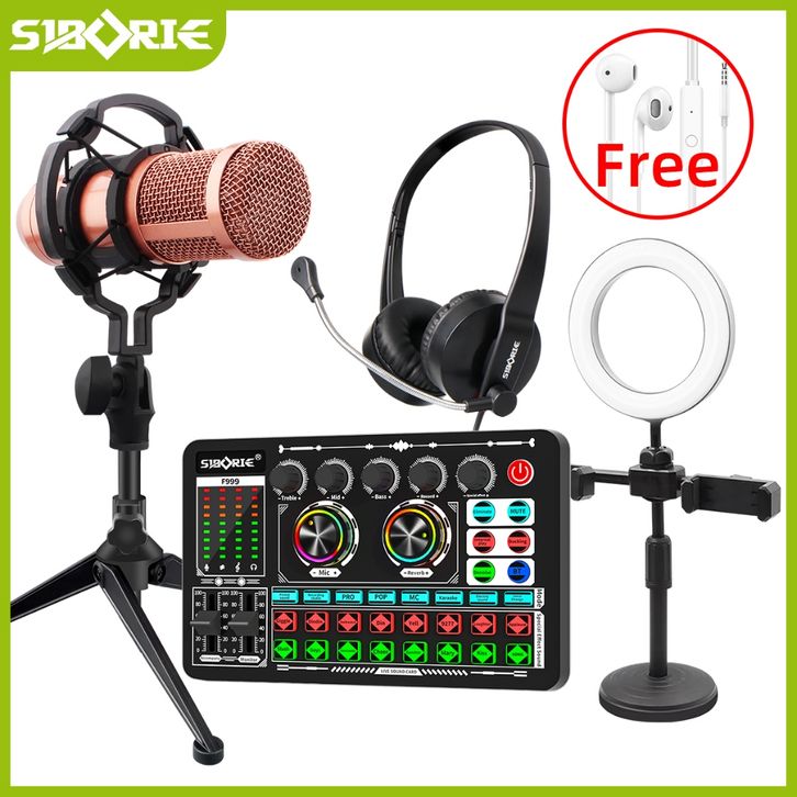 Siborie【】F999+BM800PRO+H2+Lampu Paket Lengkap Live Sound Card Mic Headphone Set