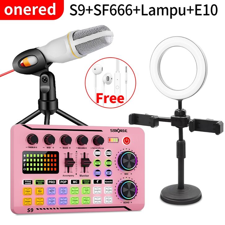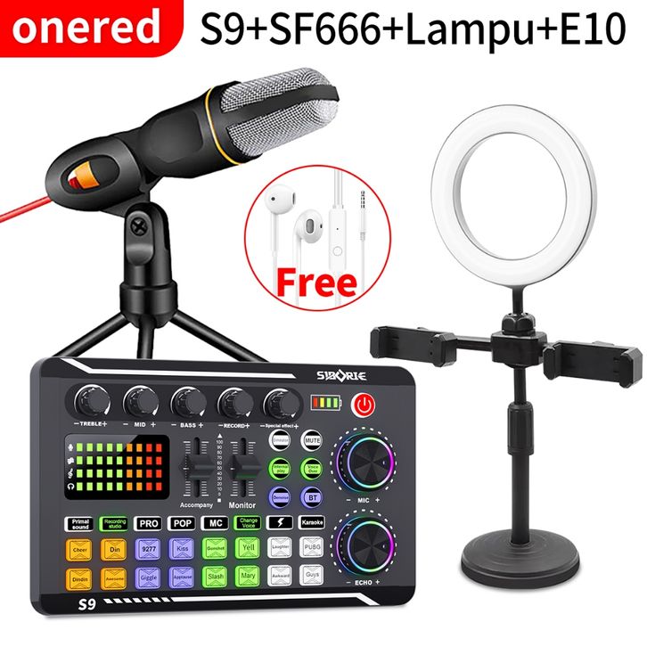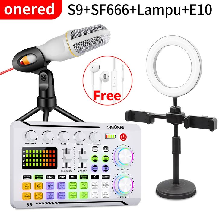 Onered【Free headset】S9+SF666+Light+E10 Paket Komplit soundcard mic Light headset Full Set Paket