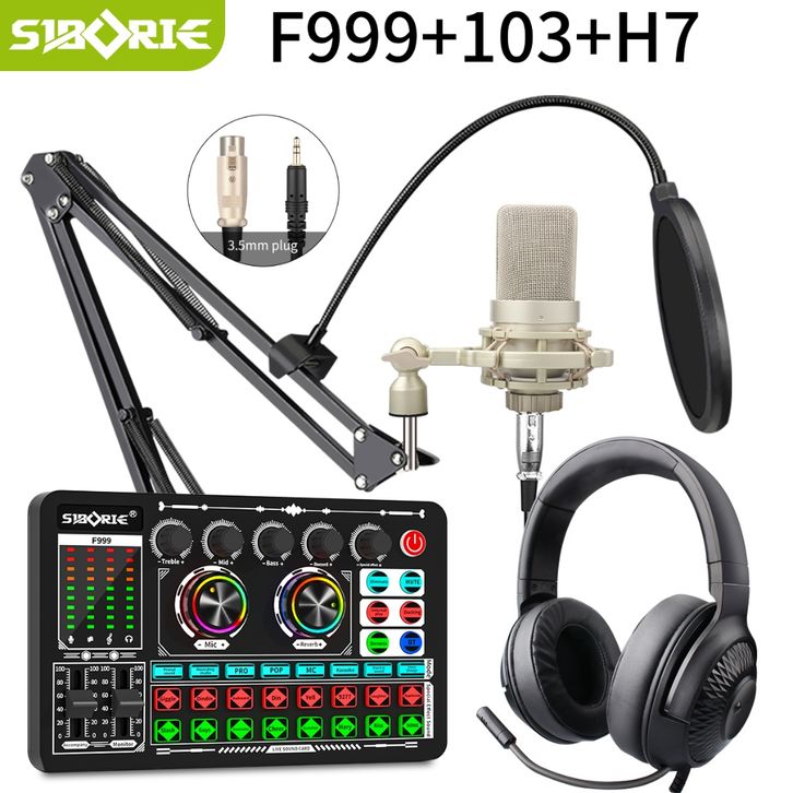 Siborie【】F999+103+H7 Paket Lengkap soundcard mic headphone Set