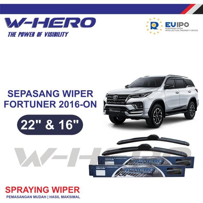 BEST SELLER Wiper Mobil Frameless Universal Premium Spraying Wiper / Wiper W-Hero Toyota Fortuner 2016 - Now Size 22" &