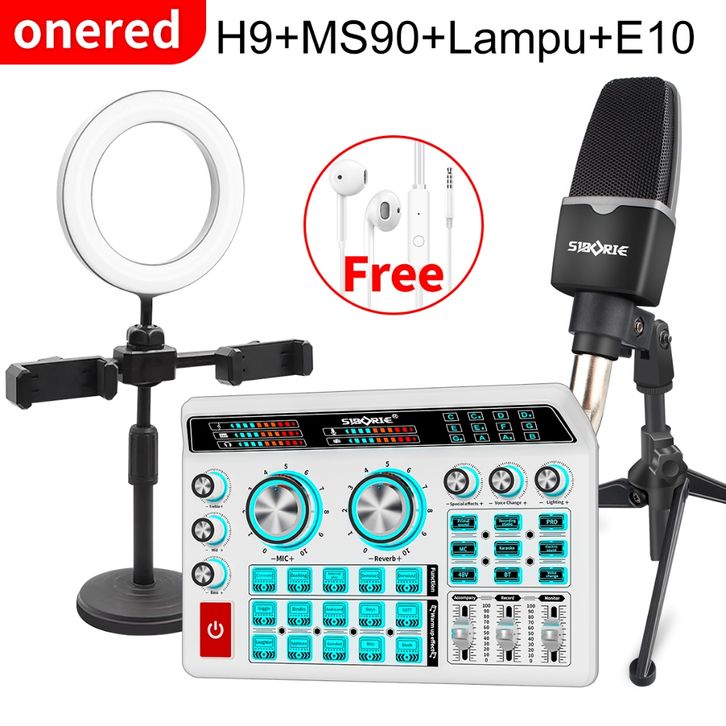 Onered H9+MS90+E10+Lampu Live Full Set Soundcard Mic Headset 4 in 1 Paket Lengkap HIFI Sound Quality